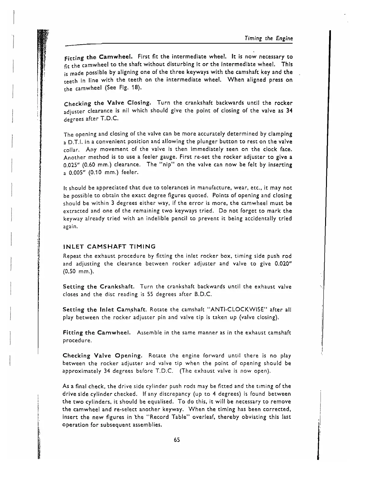 Setting the Inlet Camshaft. Rotate the camshaft "ANTI-CLOCKWISE" after all