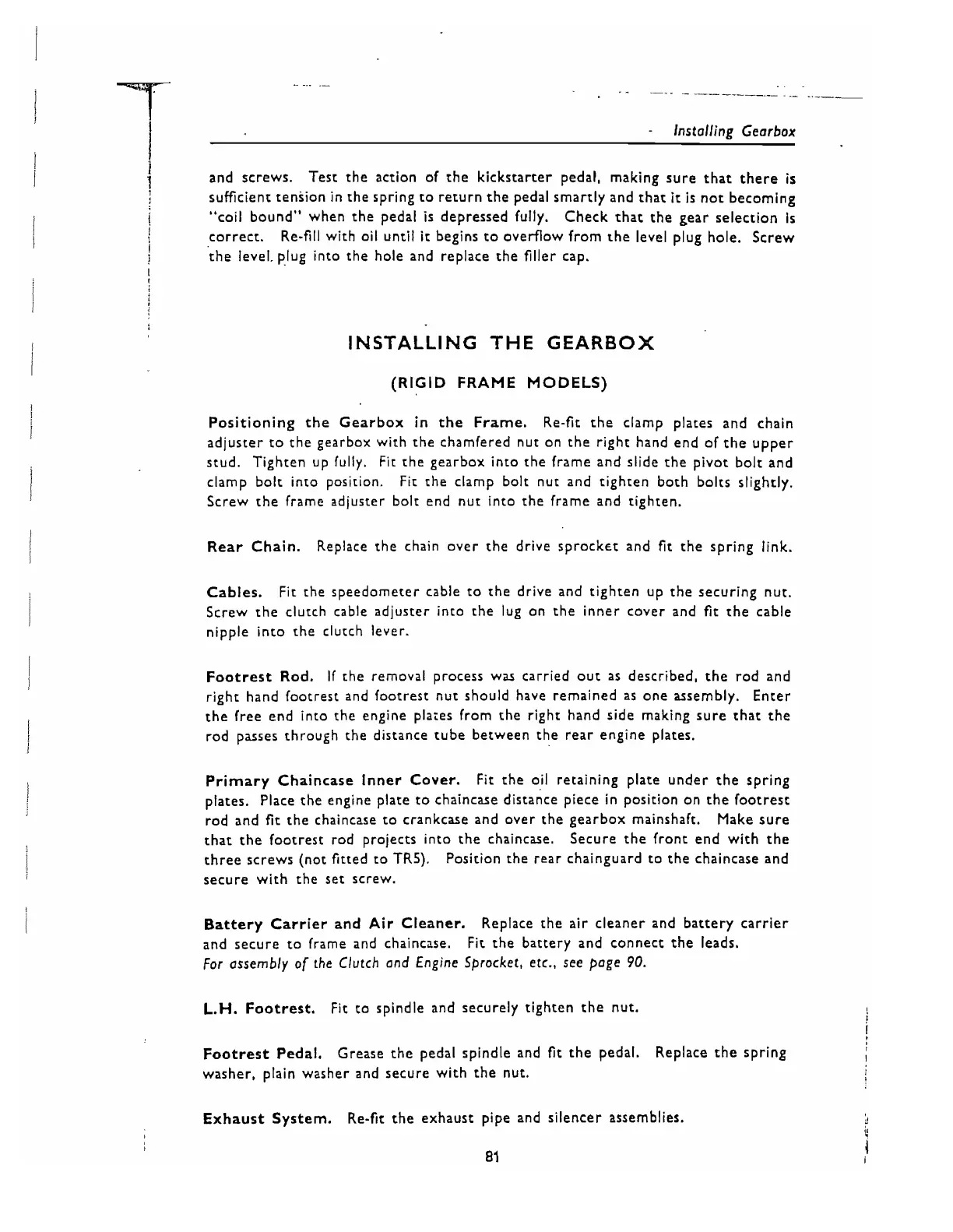 three screws (not fitted to TR5). Position the rear chainguard to the chaincase and