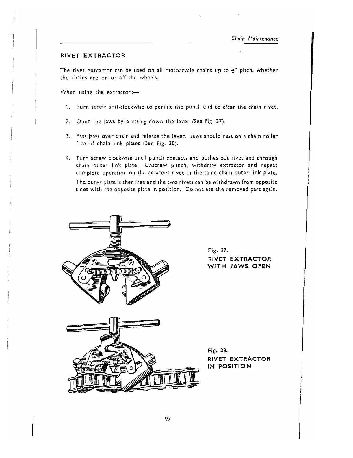 Turn screw anti.clockwise to permit the punch end to clear the chain rivet.