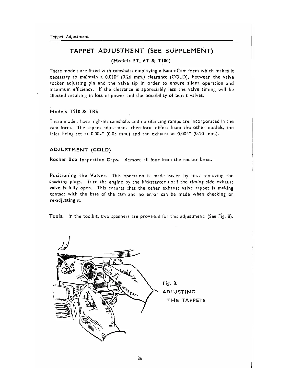Tools. In the toolkit, t,~o spanners are provided for this adjustment. (See Fig. 8).