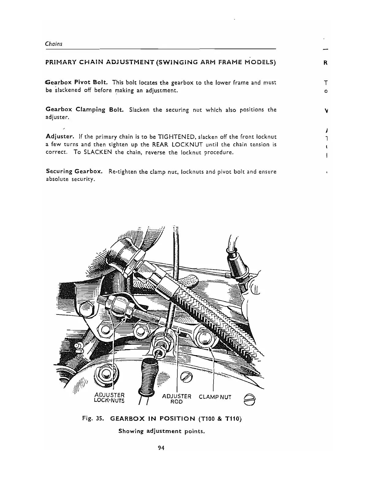 Gearbox Clamping Bolt. Slacken the securing nut which also positions the
