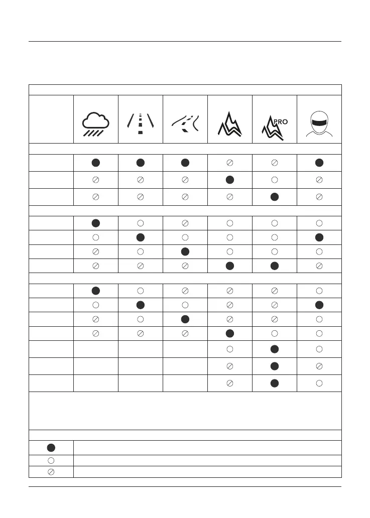 Refer to the following table for the ABS, MAP and TC options available for each riding