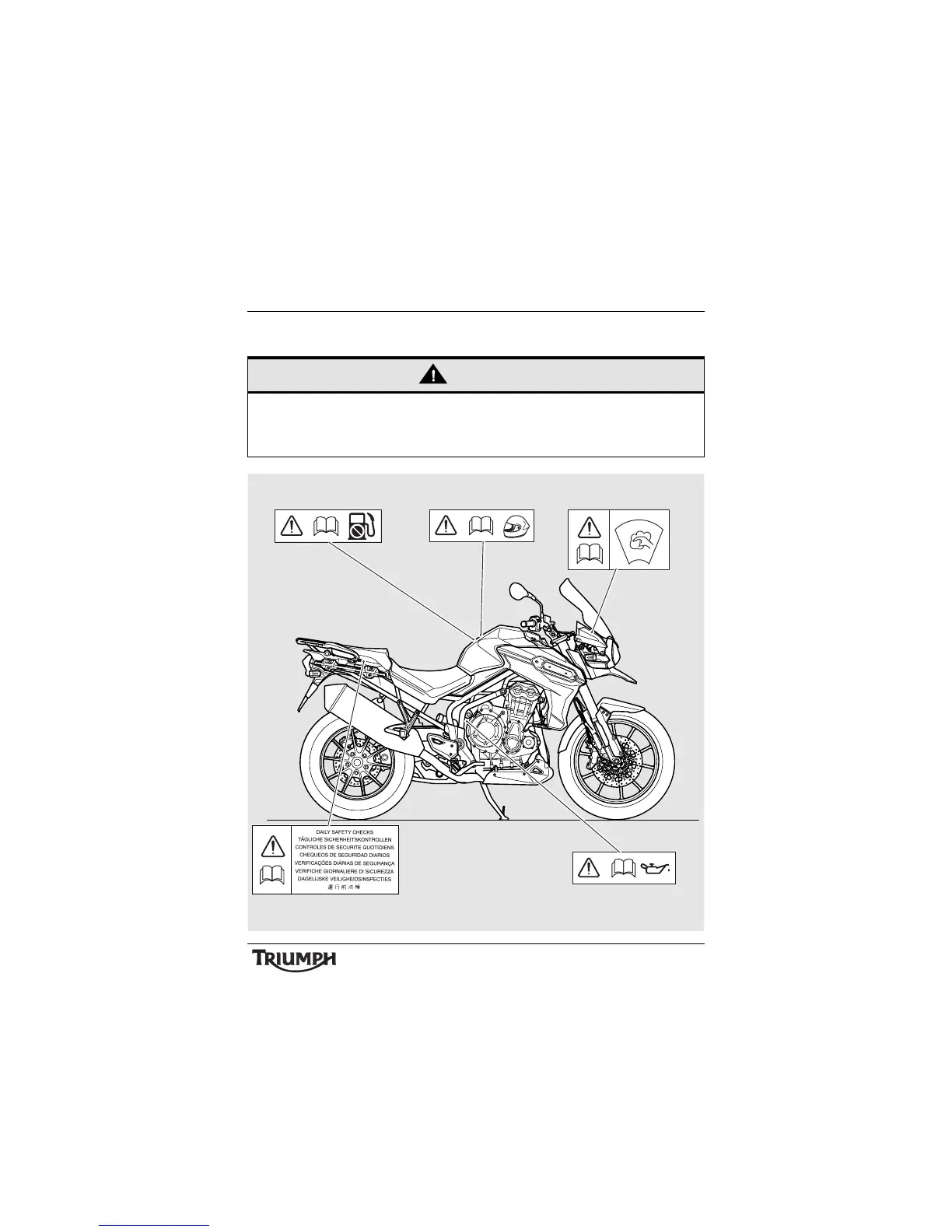 All warning labels and decals, with the exception of the Breaking-in label, are fitted to the