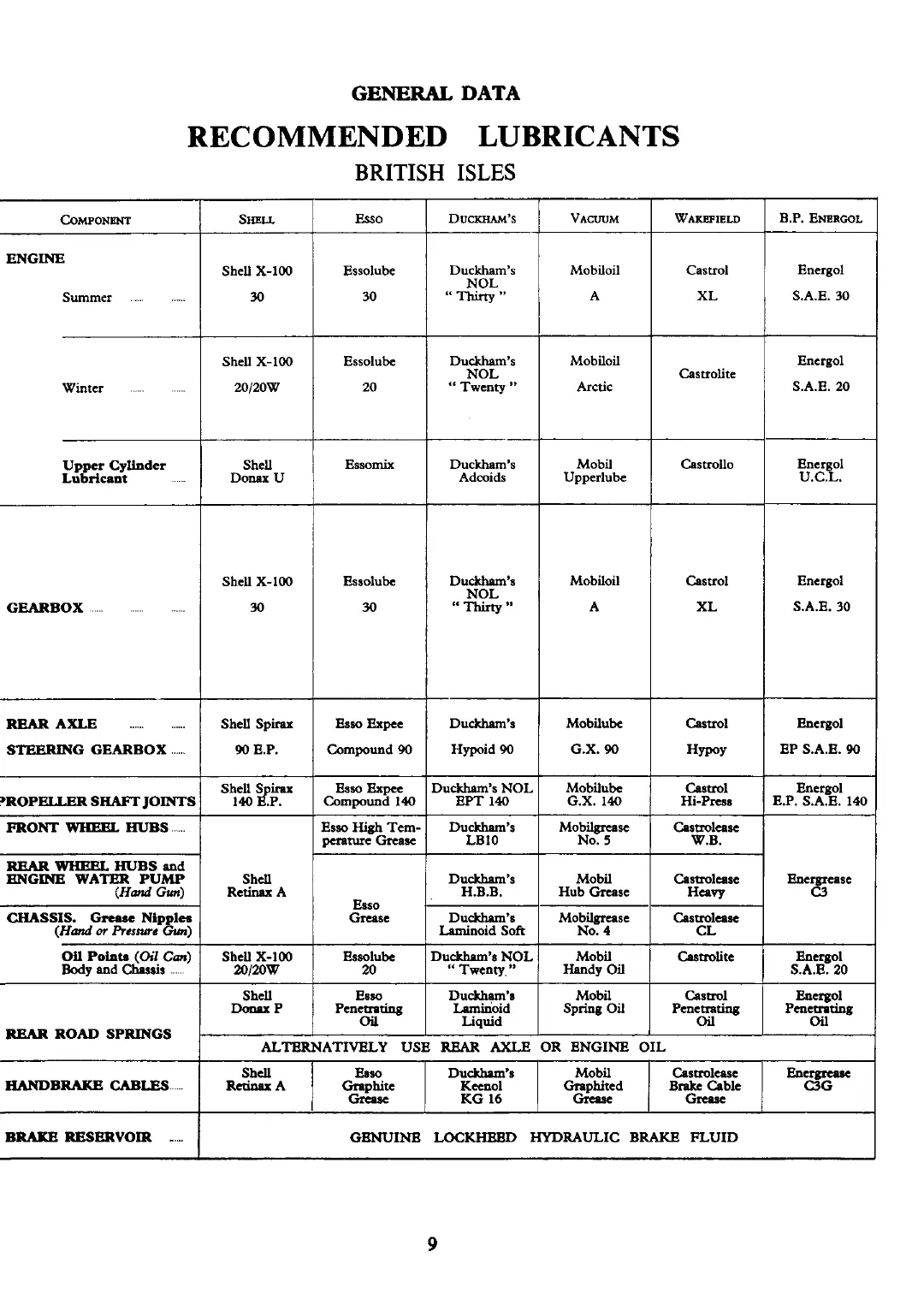 Triumph TR2 - Recommended Lubricants