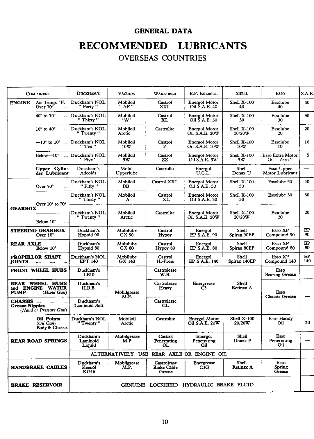 RECOMMENDED LUBRICANTS