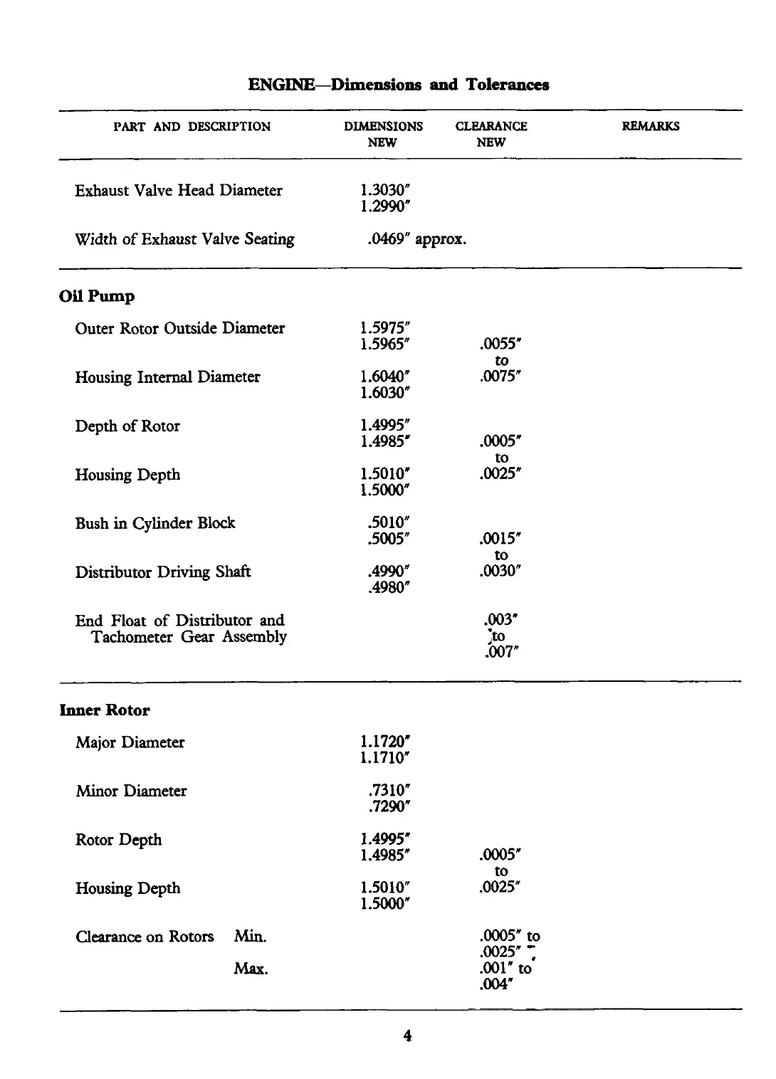 PART AND DESCRIPTION DIMENSIONS CLEARANCE