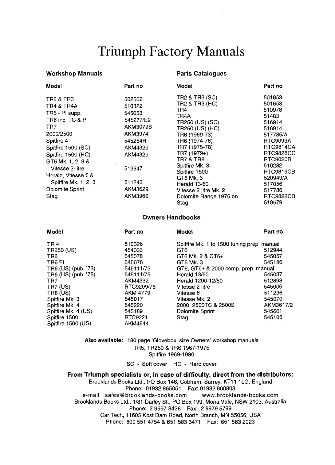e-mail sales@ brooklands-books.com