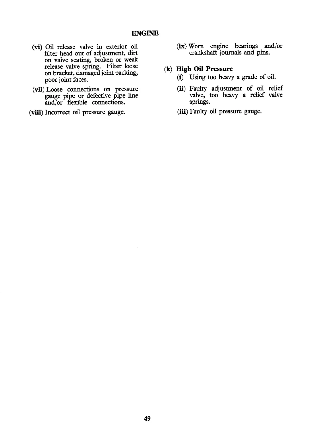 Faulty adjustment of oil relief
