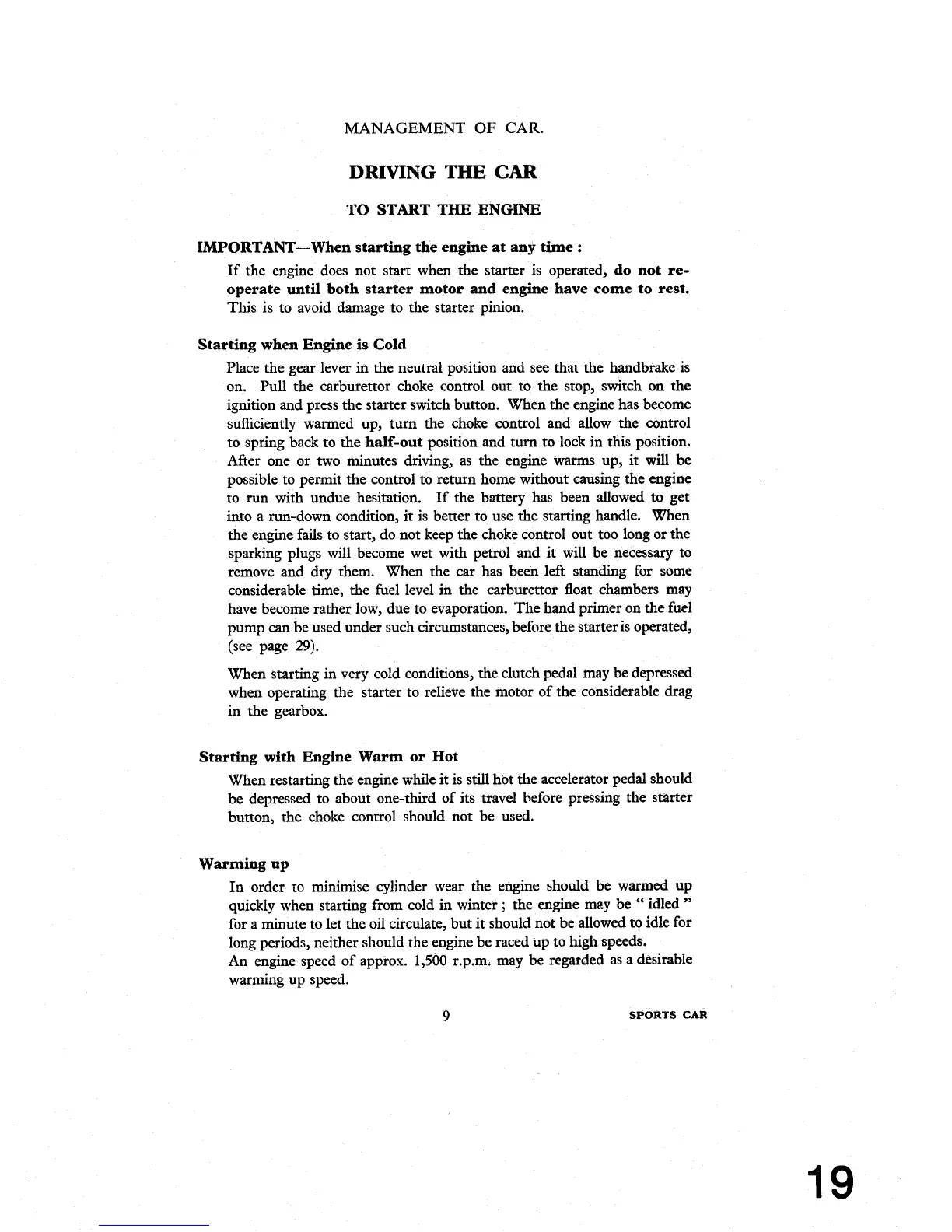 In order to minimise cylinder wear the engine should be warmed up