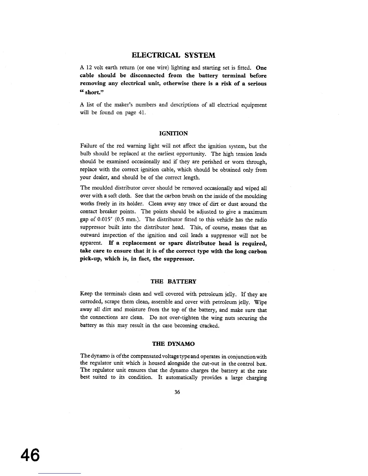 gap of 0.015" (0.5 mm.). The distributor fitted to this vehicle has the radio