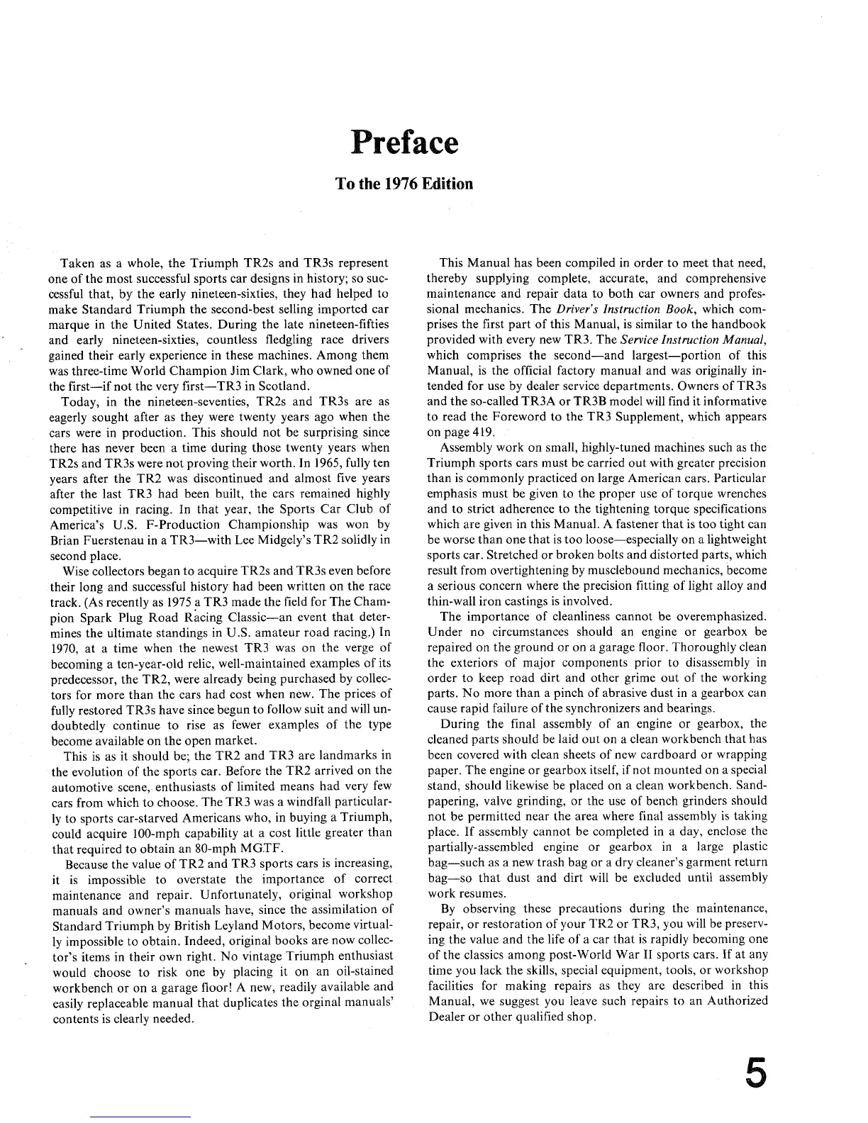 repair, or restoration of your TR2 or TR3, you will be preserv-