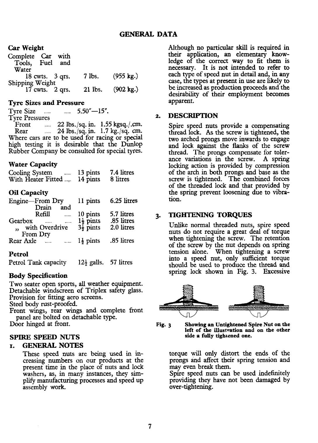 qrs. 7 lbs. (955 kg.) each type of speed nut in detail and, in