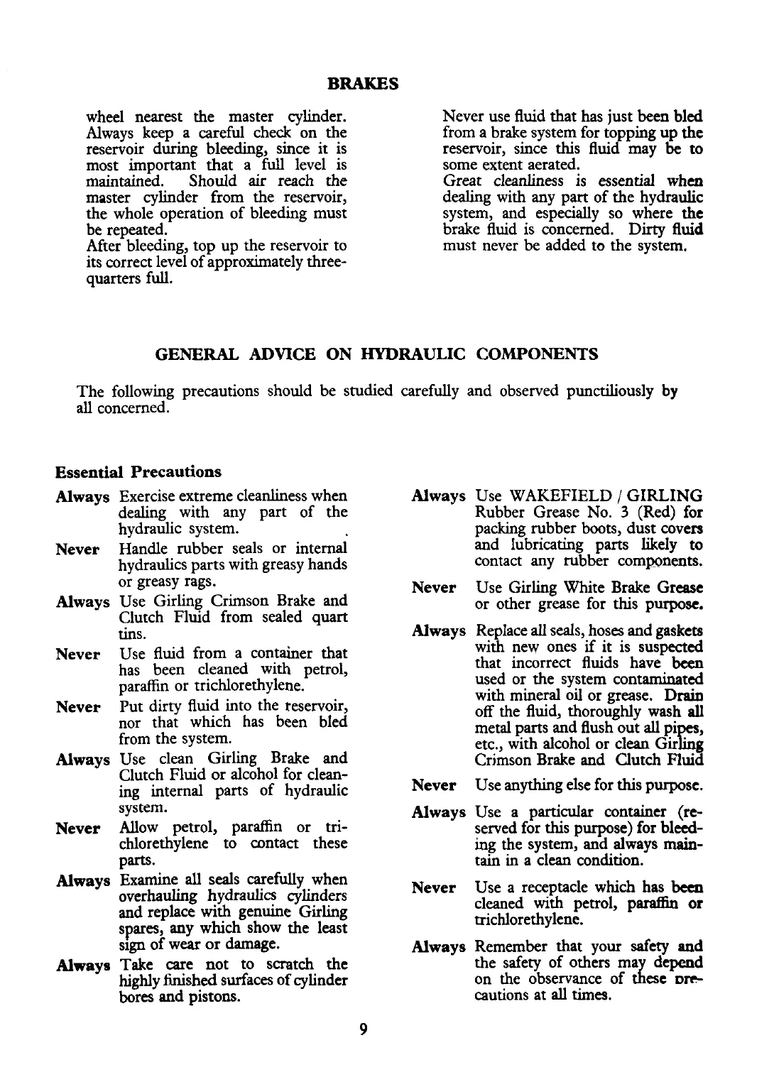 Always Use clean Girling Brake and