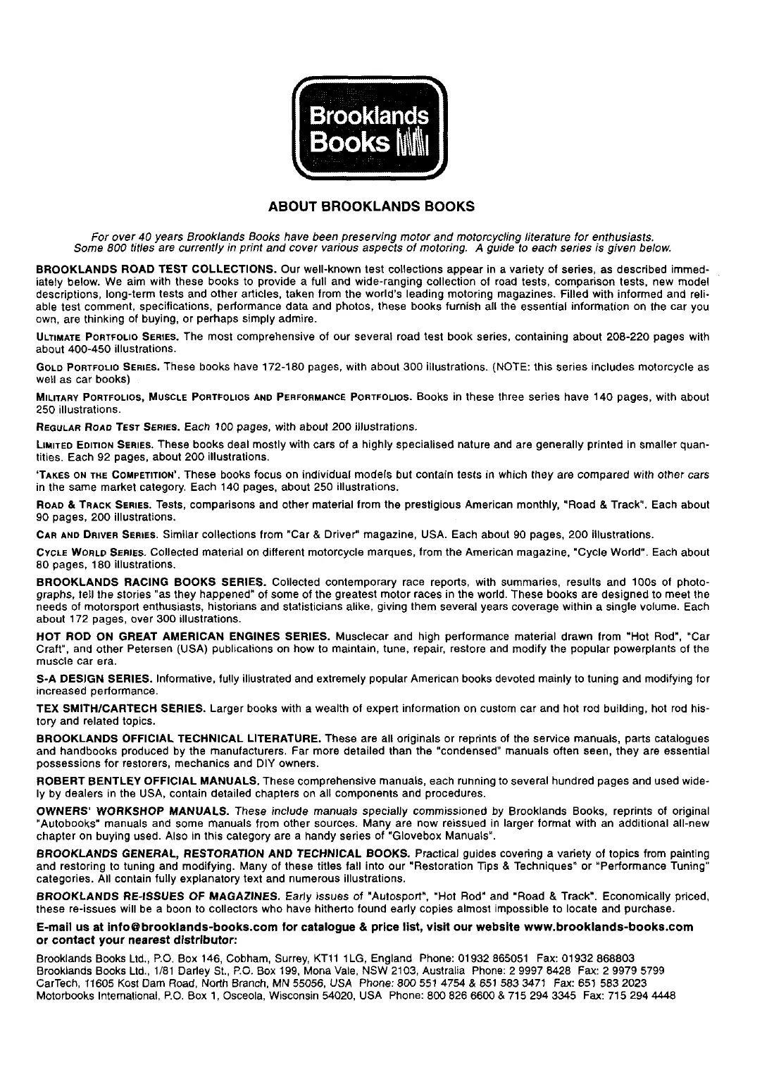 BROOKLANDS ROAD TEST COLLECTIONS. Our well-known test collections appear in a variety of series, as described immed-
