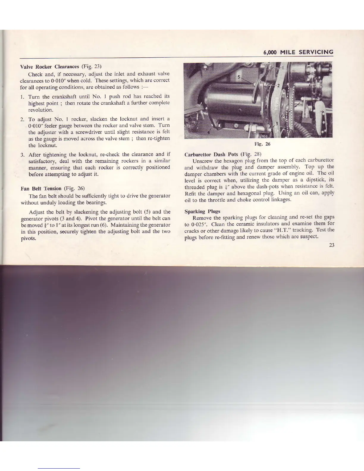 Triumph TR4 - 6,000 MILE SERVICING - ENGINE COMPONENTS; Valve Clearances, Fan Belt, Carburettors, and Spark Plugs