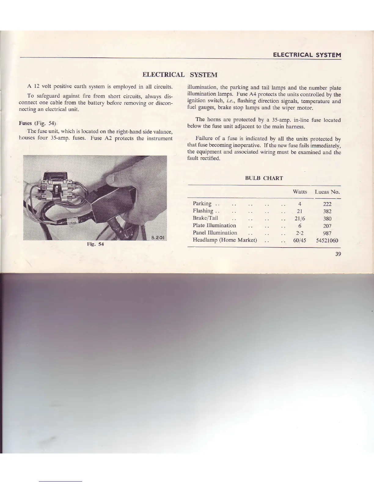 Triumph TR4 - ELECTRICAL SYSTEM; Fuse Protection and Bulb Chart