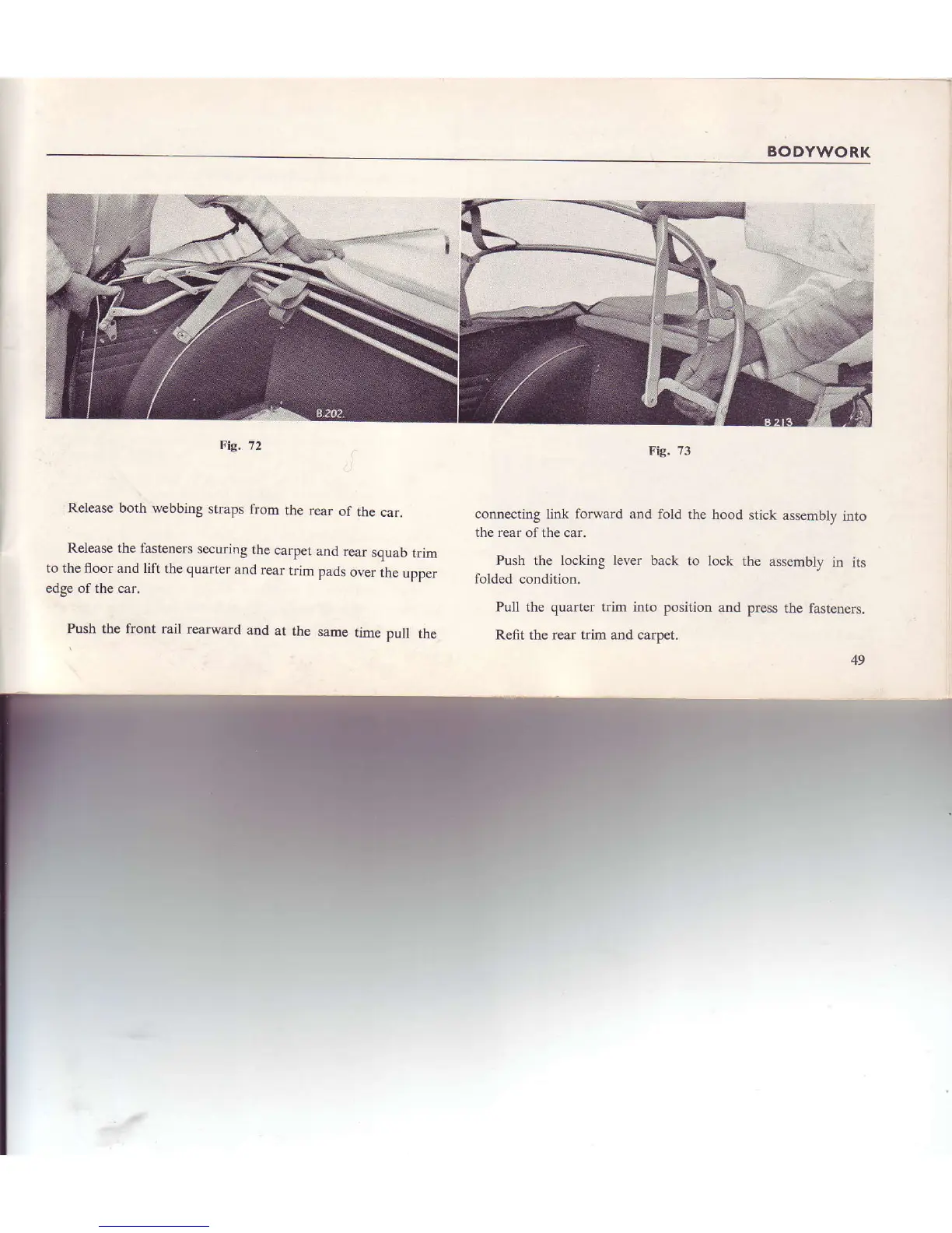 Triumph TR4 - BODYWORK - SOFT TOP RAISING AND SAFETY HARNESS; Soft Top Raising Procedure; Safety Harness Installation Provision