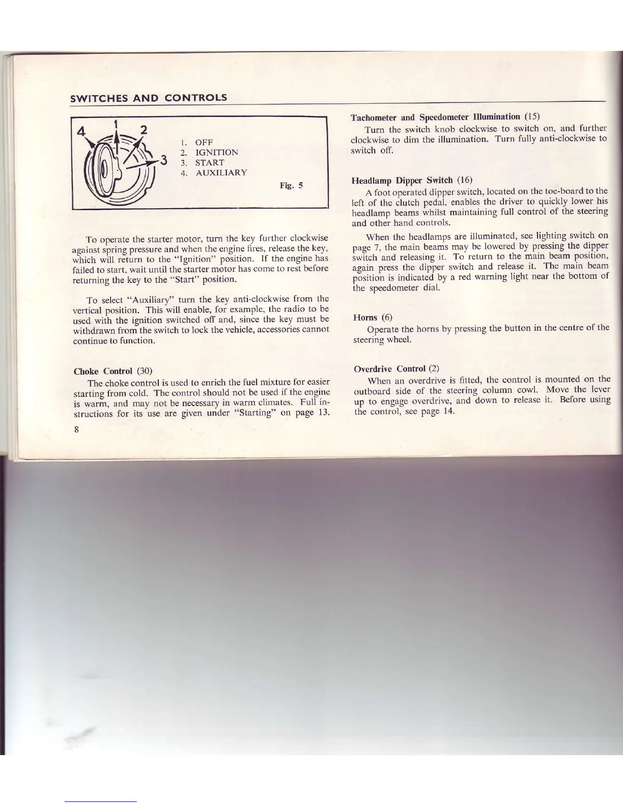 Triumph TR4 - SWITCHES AND CONTROLS - CONTINUED; Headlamp Dipper, Horns, and Overdrive