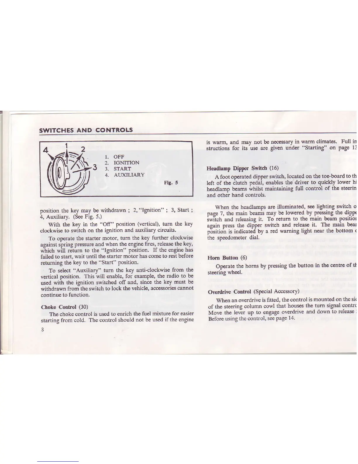 Triumph TR4A - Ignition, Starter, and Choke Controls