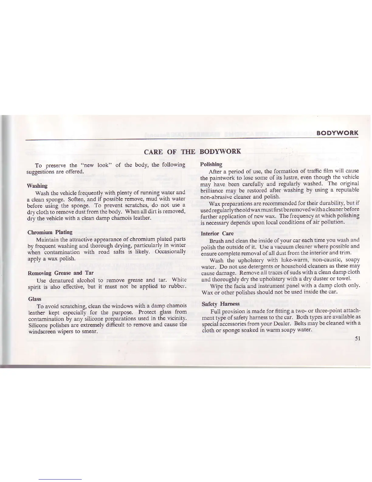 Triumph TR4A - Care of the Bodywork; Washing; Polishing; Chromium Plating