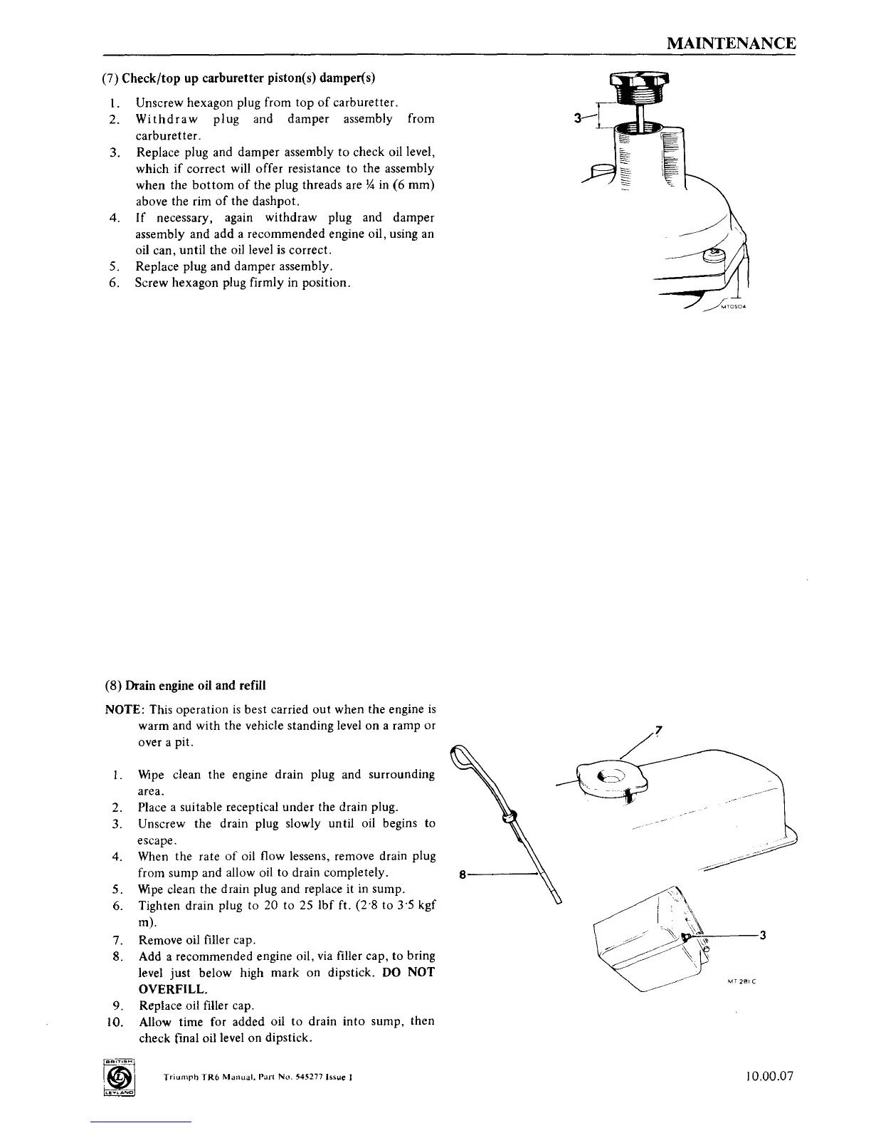 8. Add a recommended engine oil, via filler cap, to bring