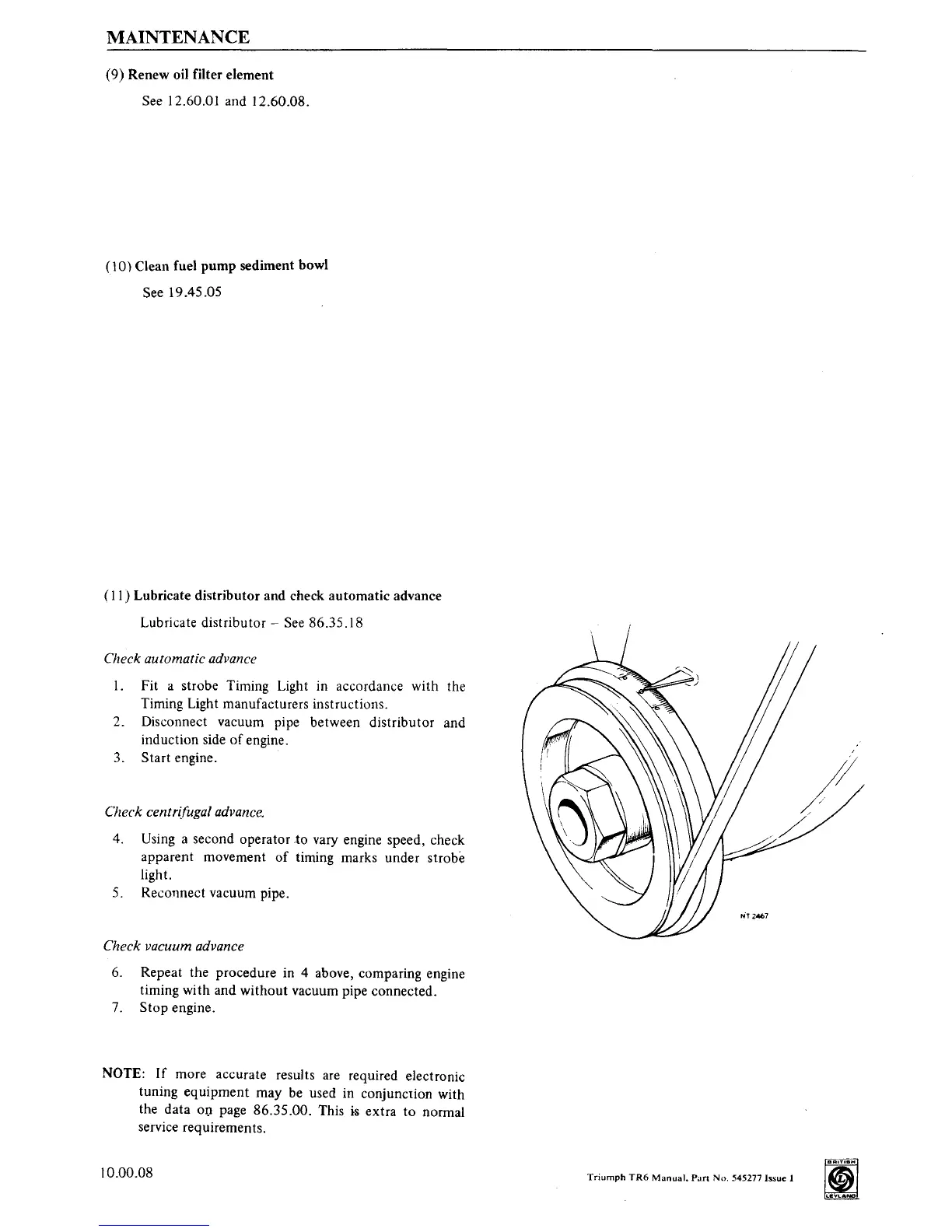 Lubricate distributor and check automatic advance