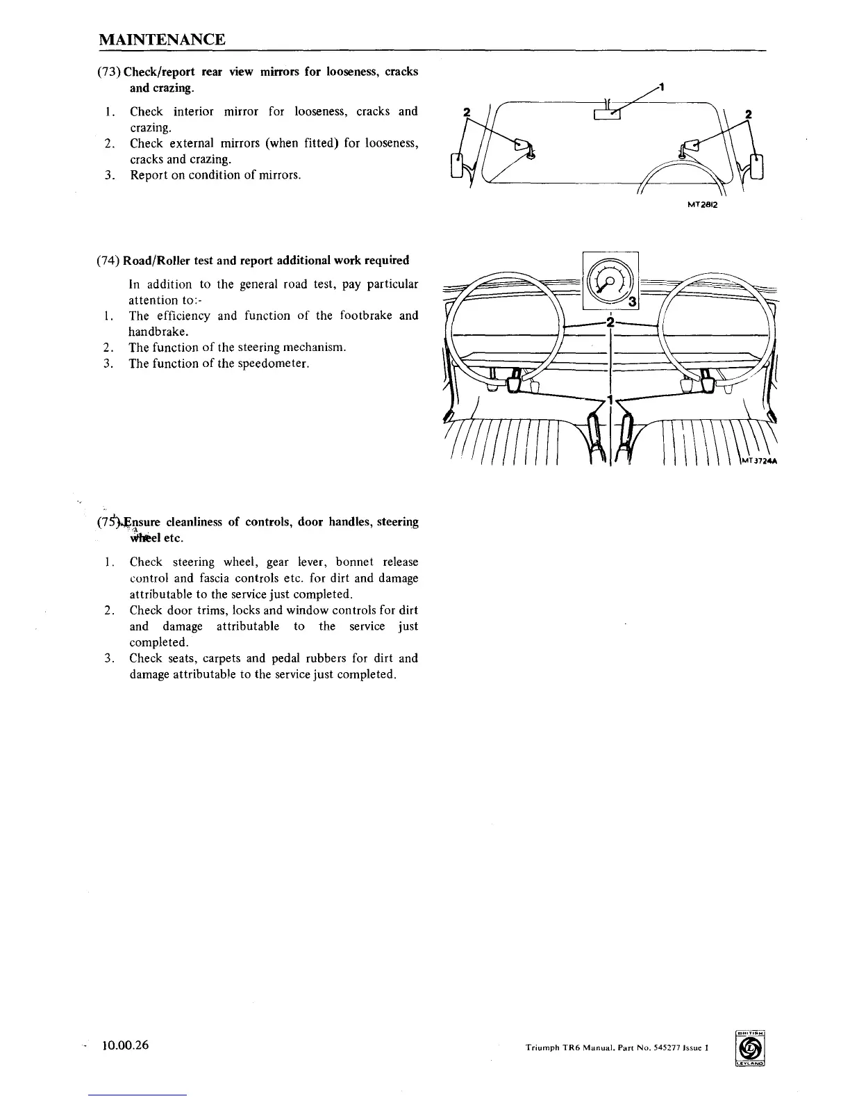 (73) Check/report rear view mirrors for looseness, cracks