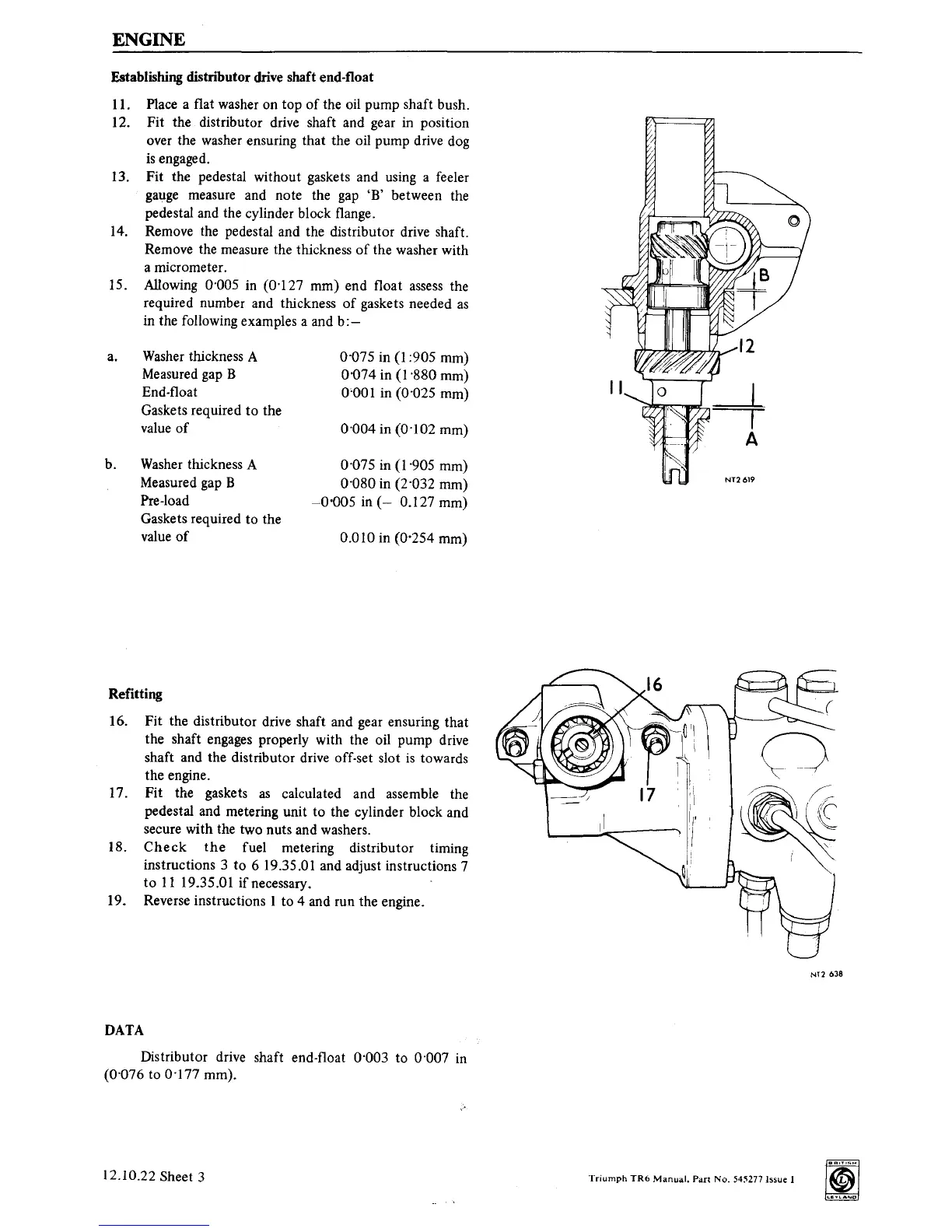 Distributor drive shaft end-float 0·003 to 0·007