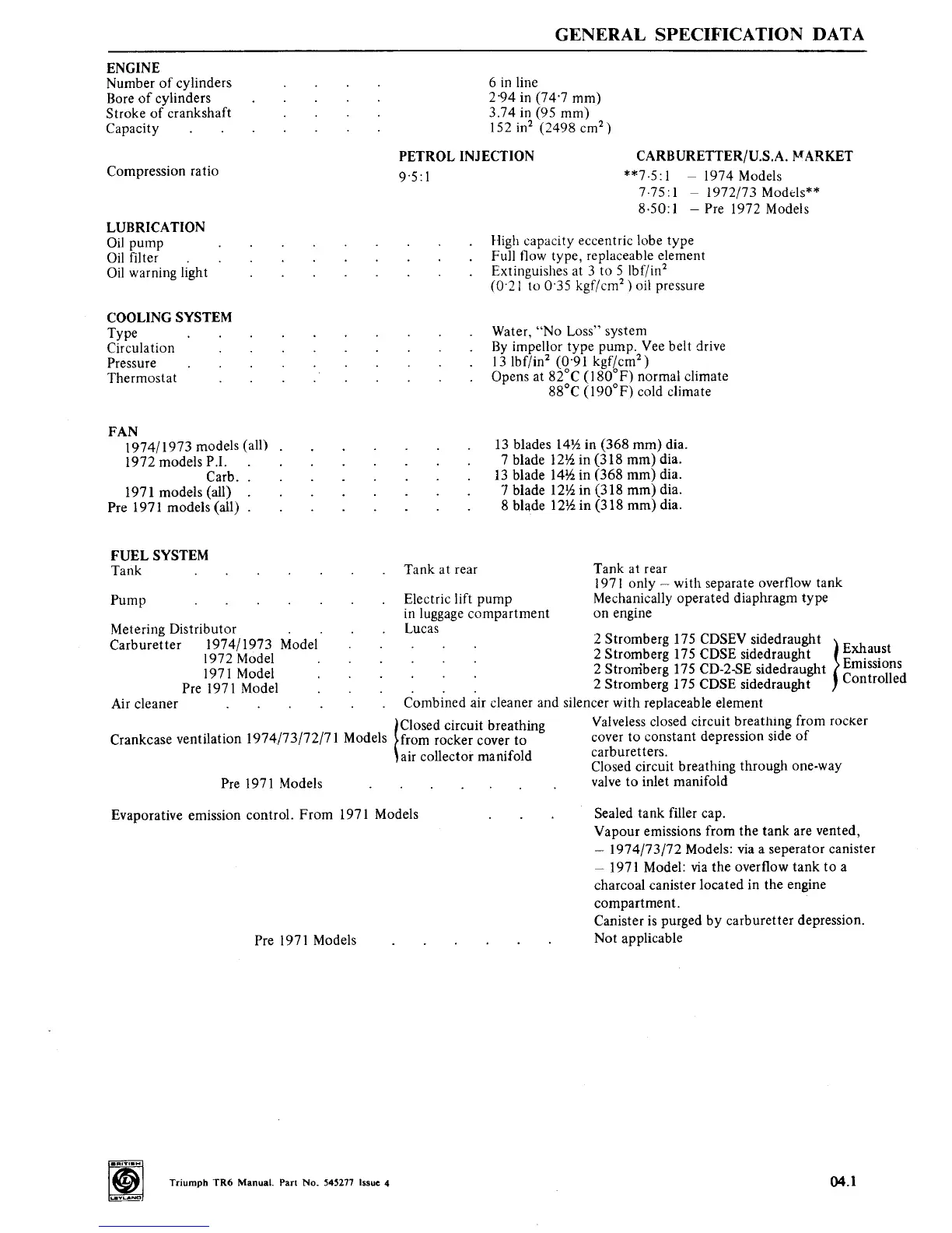 GENERAL SPECIFICATION DATA