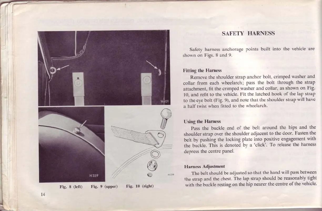 Triumph TR6 - Safety Harness Operation; Fitting the Harness; Using the Harness; Harness Adjustment