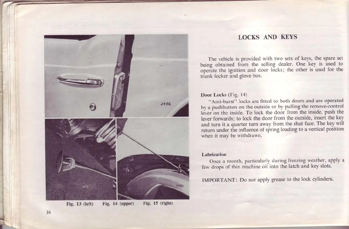 Triumph TR6 - Locks and Keys; Door Lock Operation