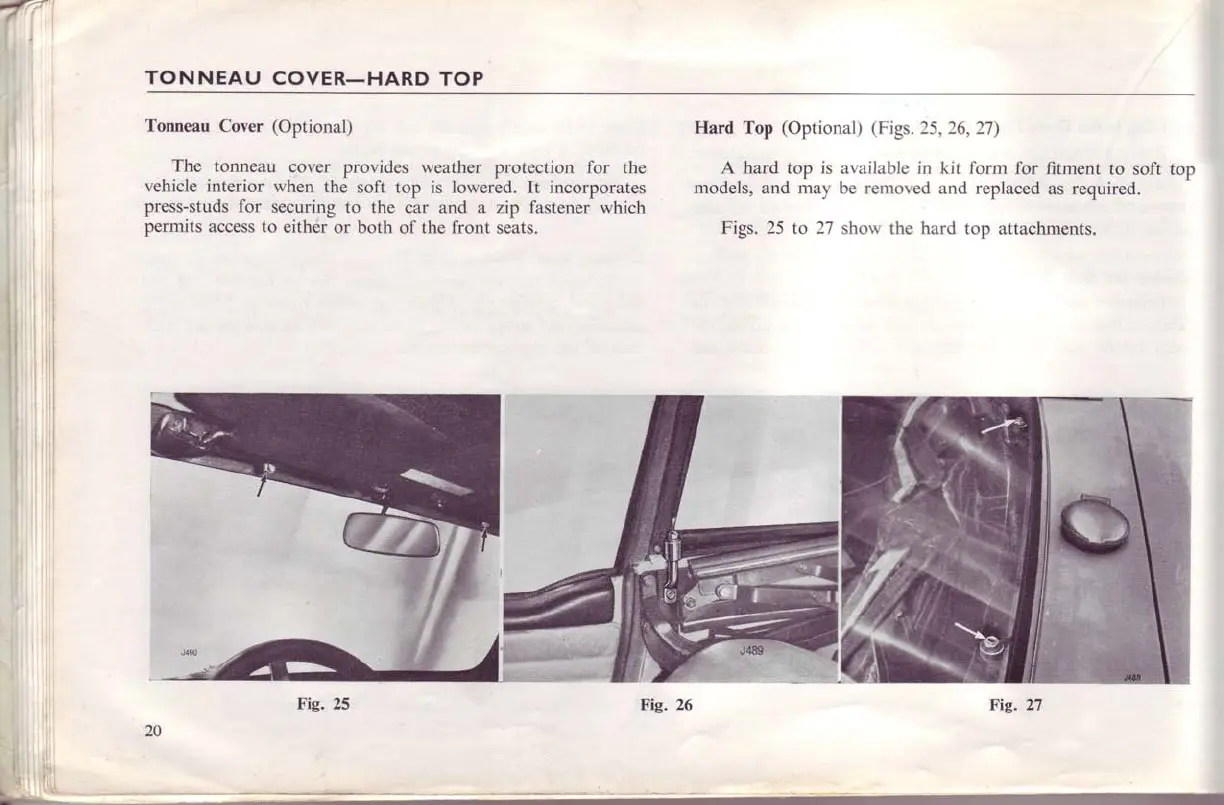 Triumph TR6 - Tonneau Cover and Hard Top; Tonneau Cover Usage; Optional Hard Top Fitting