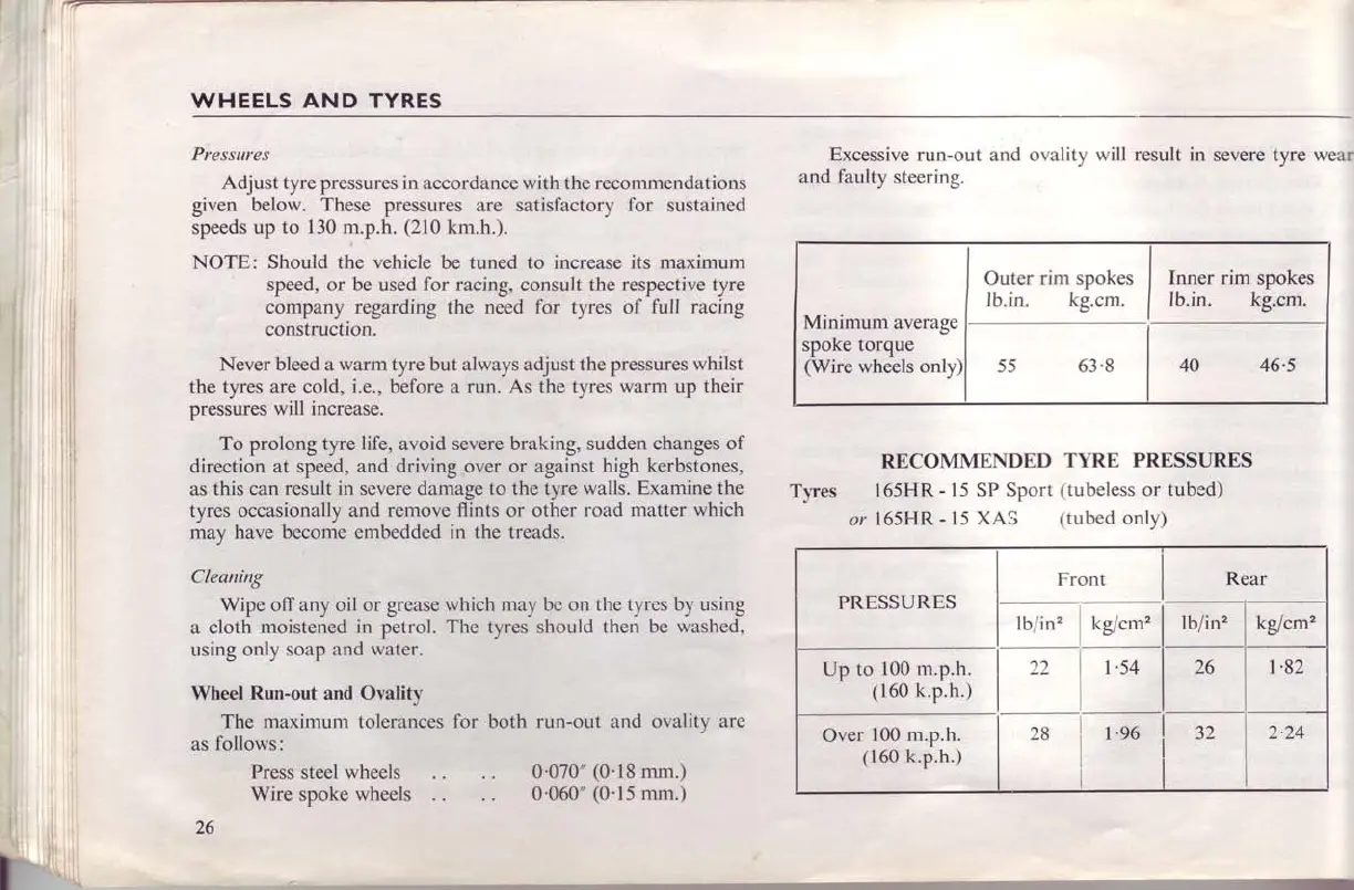 TYRE PRESSURES