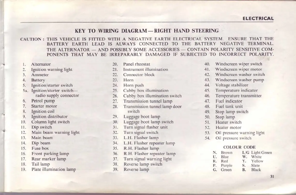Triumph TR6 - Wiring Diagrams Key and Colour Code