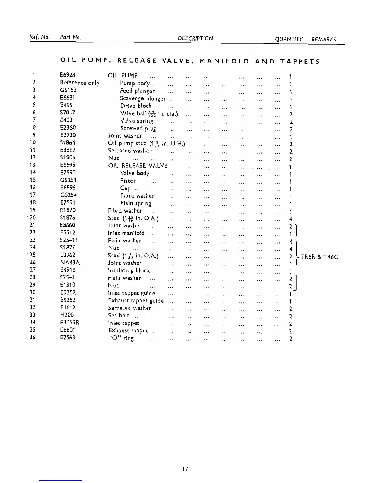 OIL PUMP. RELEASE VALVE. MANIFOLD AND TAPPETS