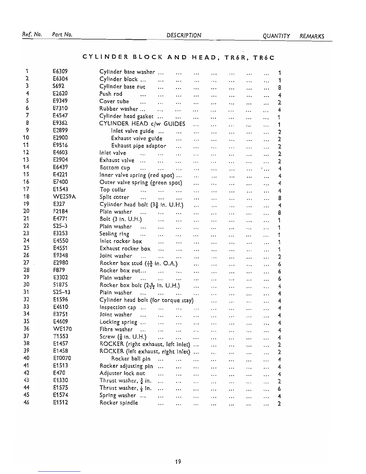 CYLINDER BLOCK AND HEAD. TR6R. TR6C
