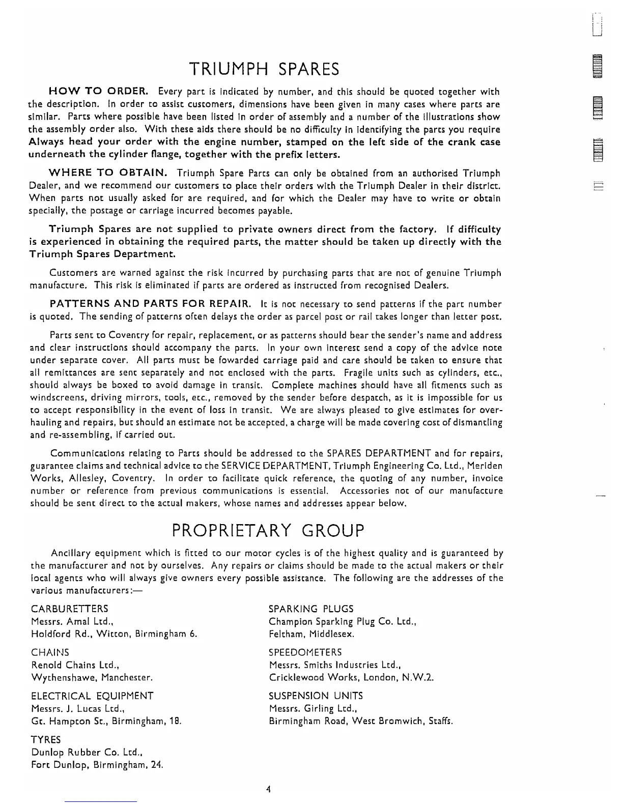 Communications relating to Parts should be addressed to the SPARES DEPARTMENT and for repairs.