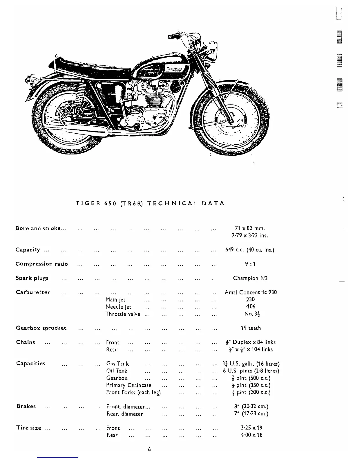 Triumph TR6C Trophy 650 - Technical Data: Tiger 650 (TR6 R)