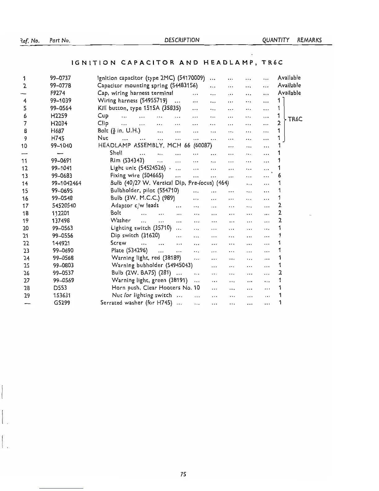 IGNITION CAPACITOR AND HEADLAMP. TR6C