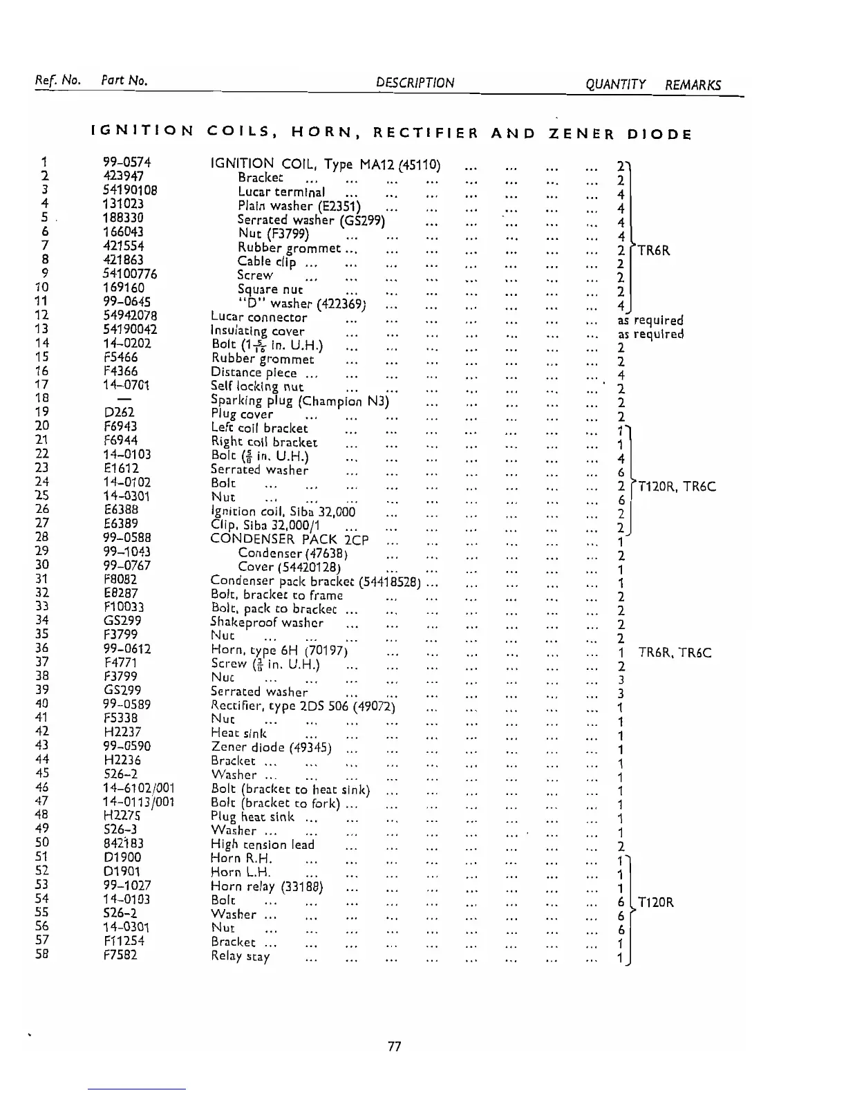Ref. No. Port No. DESCRIPTION OUANTITY REMARKS