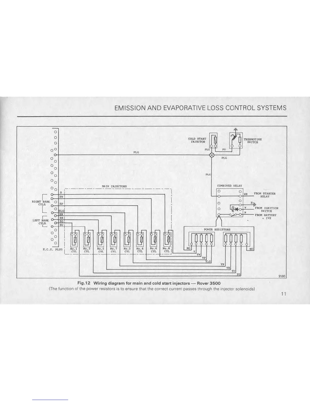 Wiring diagram for main and cold start injectors - Rover