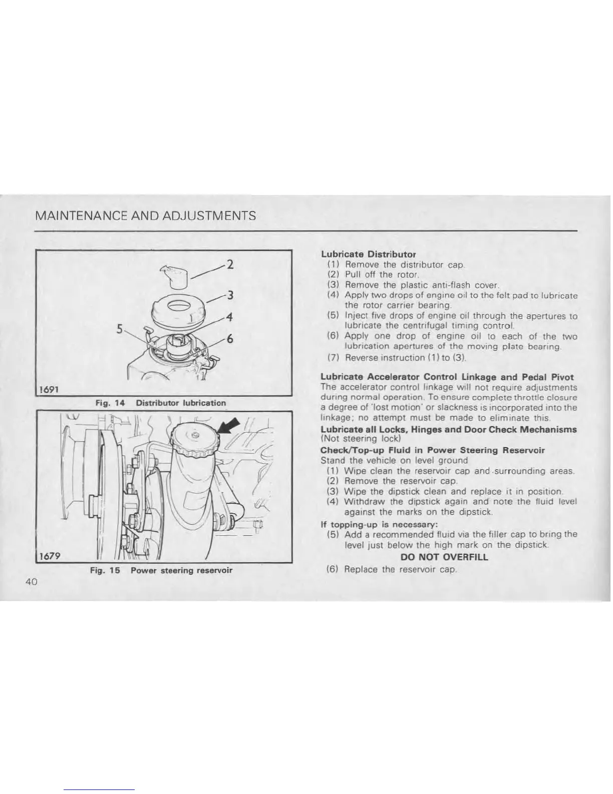 Triumph TR7 - Check;Top-Up Fluid in Power Steering Reservoir; Lubricate Distributor (Not TR 7); Lubricate Accelerator Control Linkage and Pedal Pivot; Lubricate All Locks, Hinges and Door-Check Mechanisms