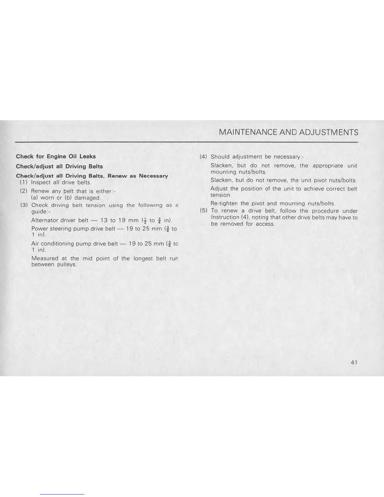 Triumph TR7 - Check for Oil Leaks _. X X X X X; Check;Adjust All Driving Belts, Renew as Necessary. X X X