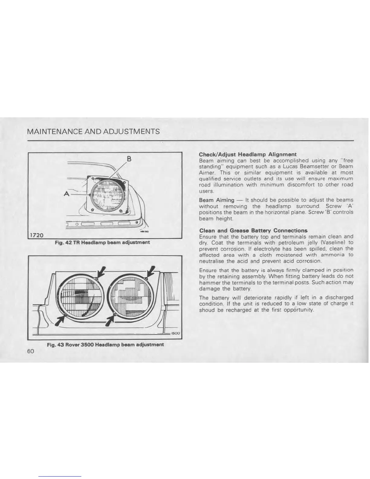 Triumph TR7 - Beam Aiming; Clean and Grease Battery Connections; Check;Adjust Headlamp Alignment