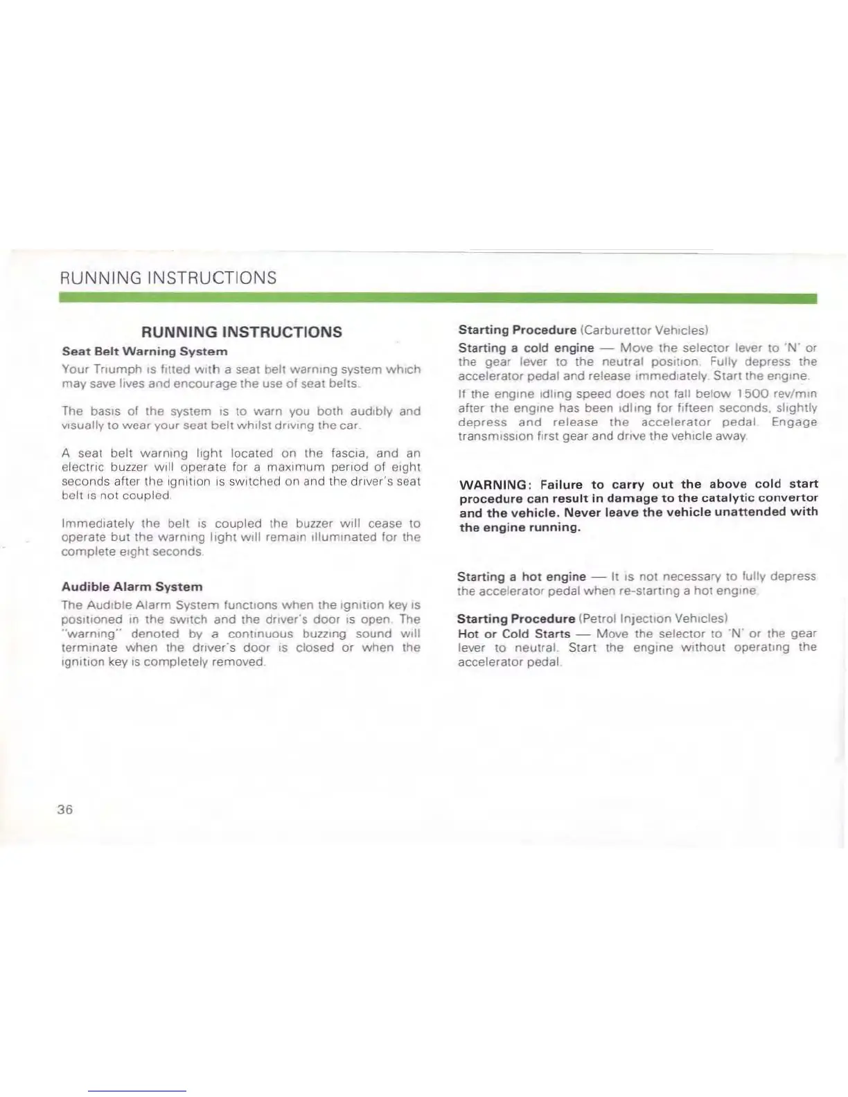 Triumph TR8 - Warning Systems: Seat Belt and Audible Alarms