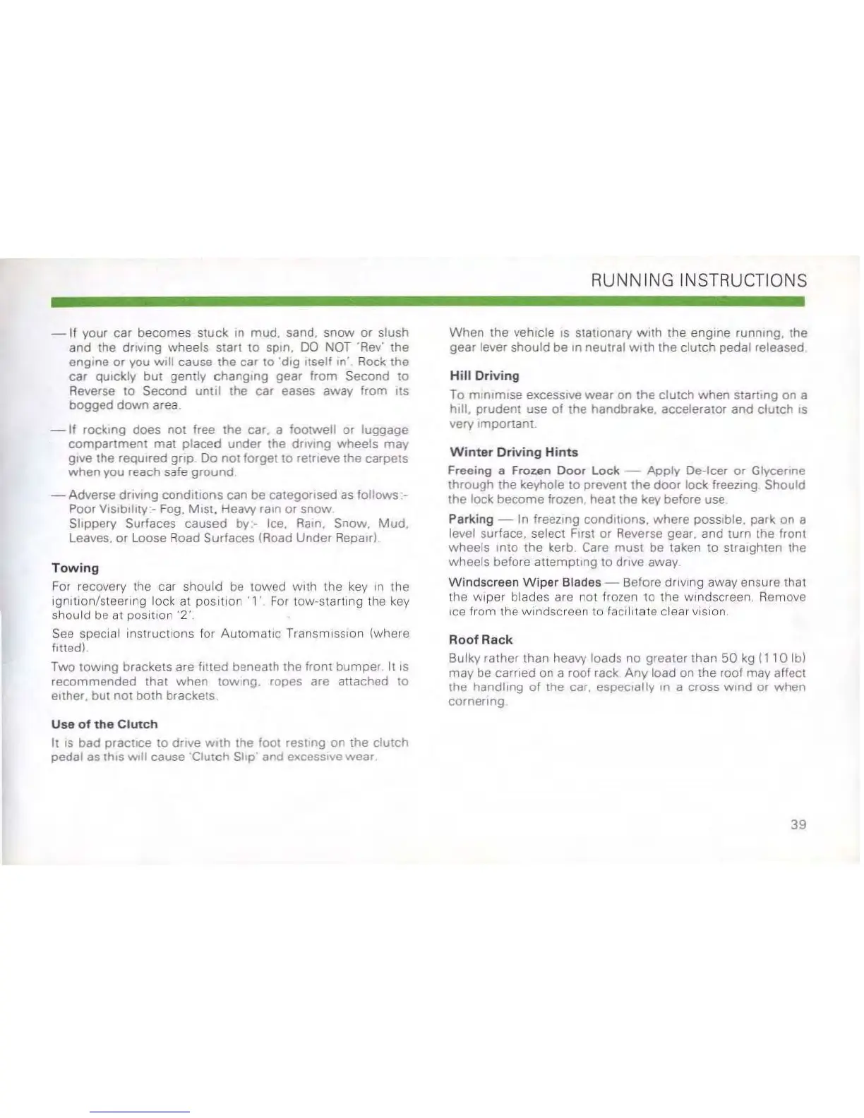 Blades - Before drIVing away ensure that