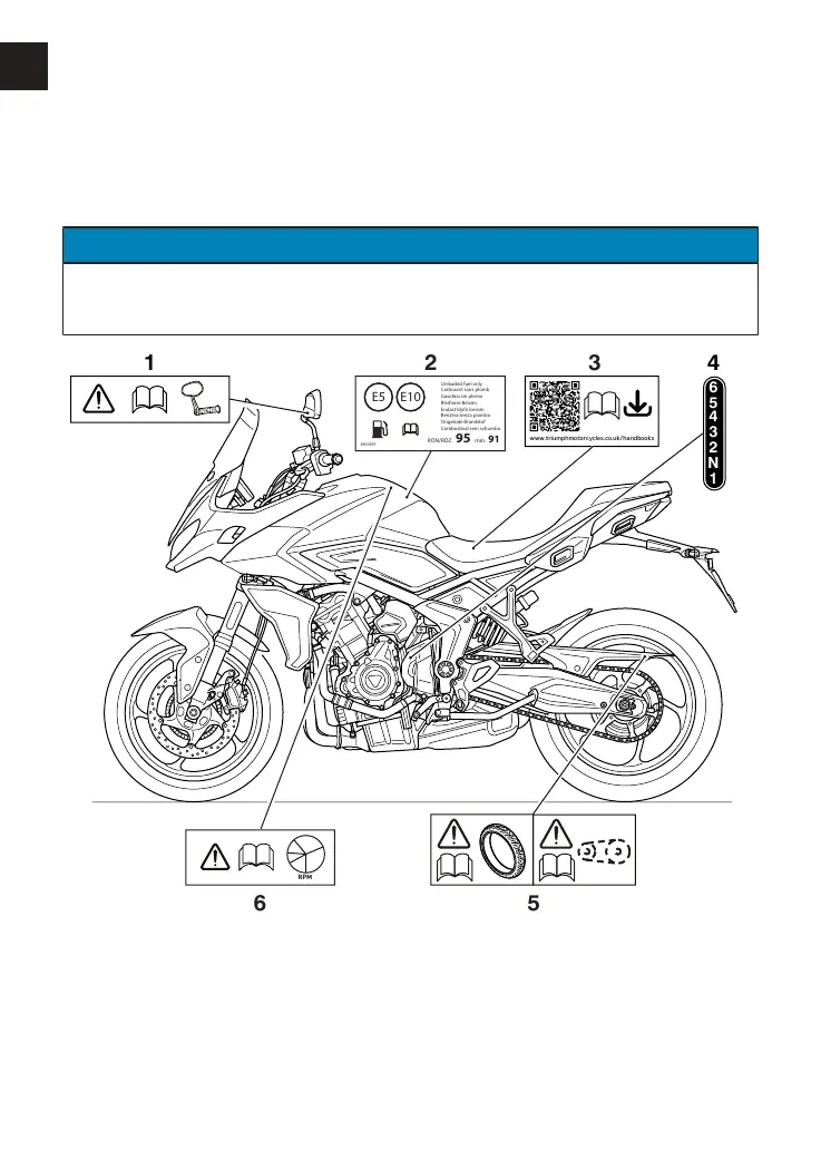 The motorcycle shown is the TigerSport, however all labels are in the same location