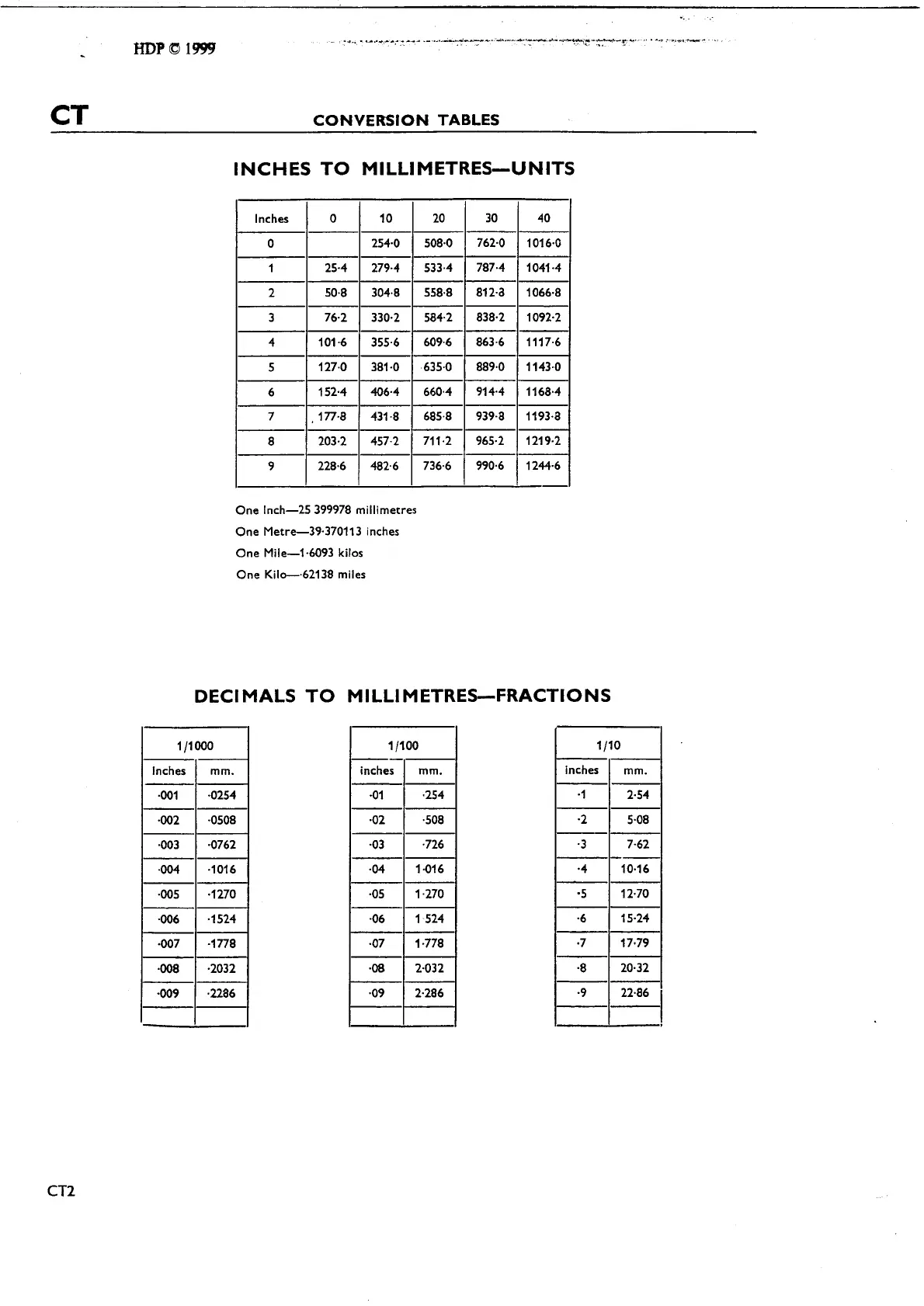 Triumph Trident T150R - Inches to Millimetres - Units; Decimals to Millimetres - Fractions