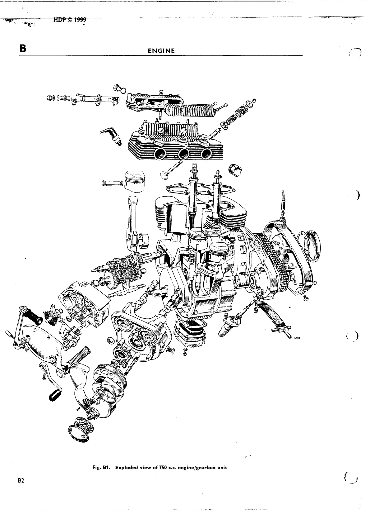 Triumph Trident T150R - Exploded View of 750 C.C. Engine;Gearbox Unit