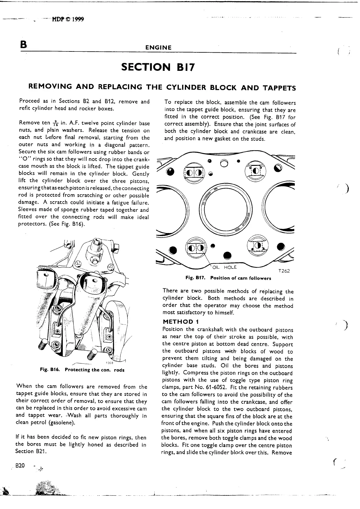 Triumph Trident T150R - Removing and Replacing the Cylinder Block and Tappets; Protecting the Con. Rods; Position of Cam Followers